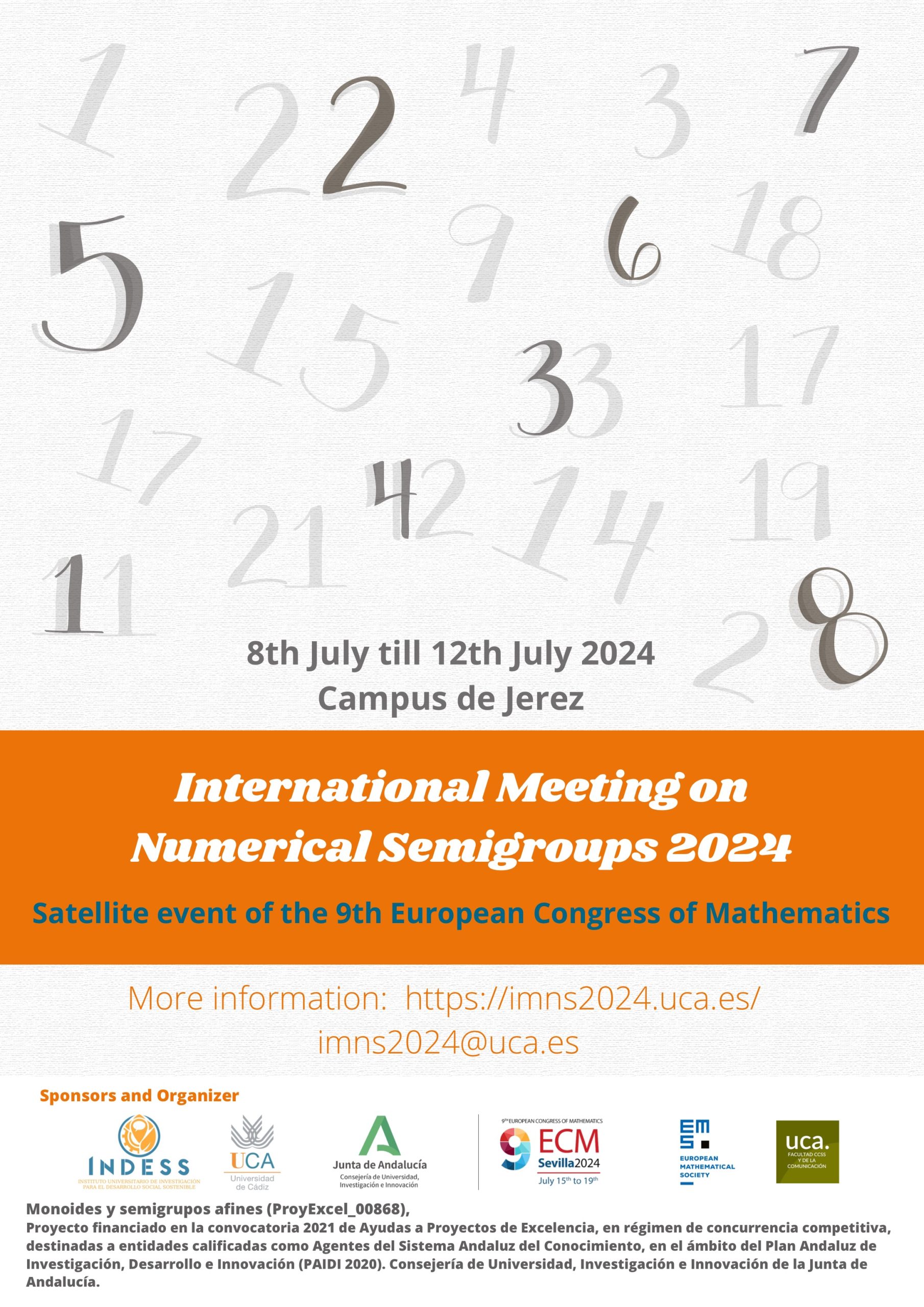 The meeting is a satellite event of the 9th European Congress of Mathematics. More information about the 9ECM may be found on its official homepage “https://www.ecm2024sevilla.